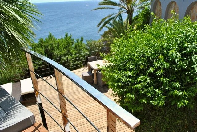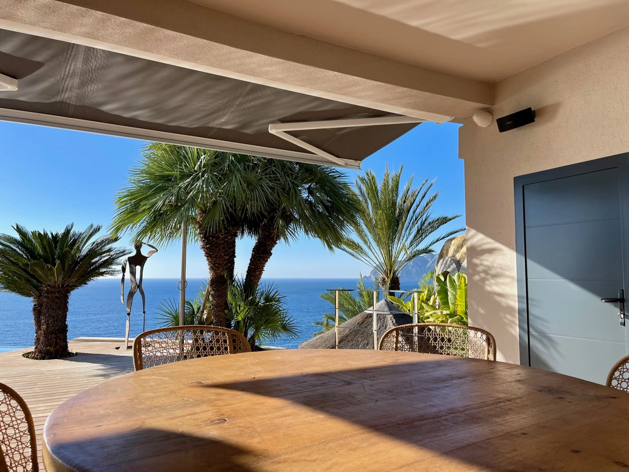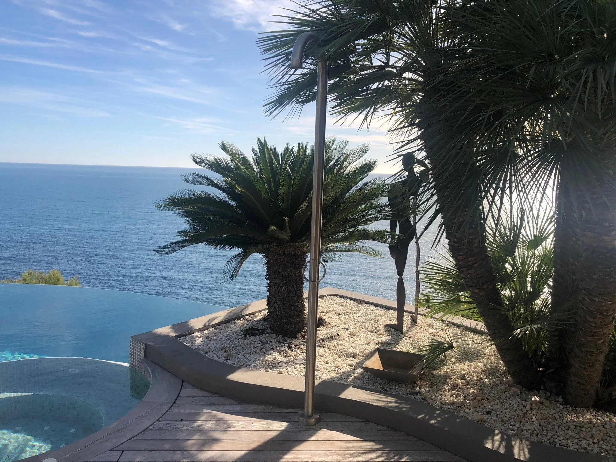 The 356m2 built first-line villa on a 800m2 plot features 3 open sea view floors .